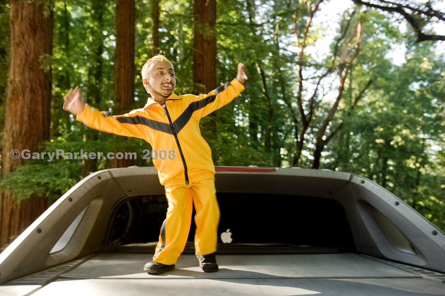 Life is a stage for Primordial Dwarf Romeo Dev, photographed dancing and singing in fluent Hindi on a truck bed in California