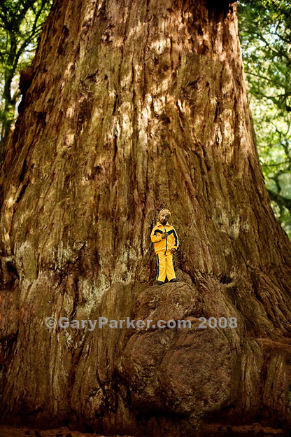 The humbling enormity of the massive redwood tree - the world's largest living thing - creates a striking contrast to Punjabi Primordial Dwarf Romeo Dev, at 20 years old, 2 ft 9" and 21 pounds one of the smallest adult human beings on Earth.
